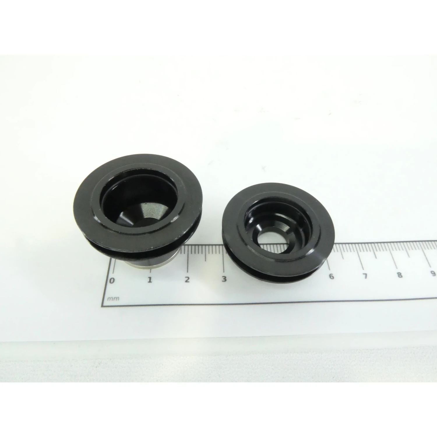Endanschläge, um DT Swiss 240s Centerlock und alle 180 Vorderrad-Naben oder XRC 1250, XR 1501, XM 1501, EX 1501 und XRC 950 Vorderräder mit 15x100mm Einbaumaß auf 9x100mm Thru Bolt umzurüsten.
