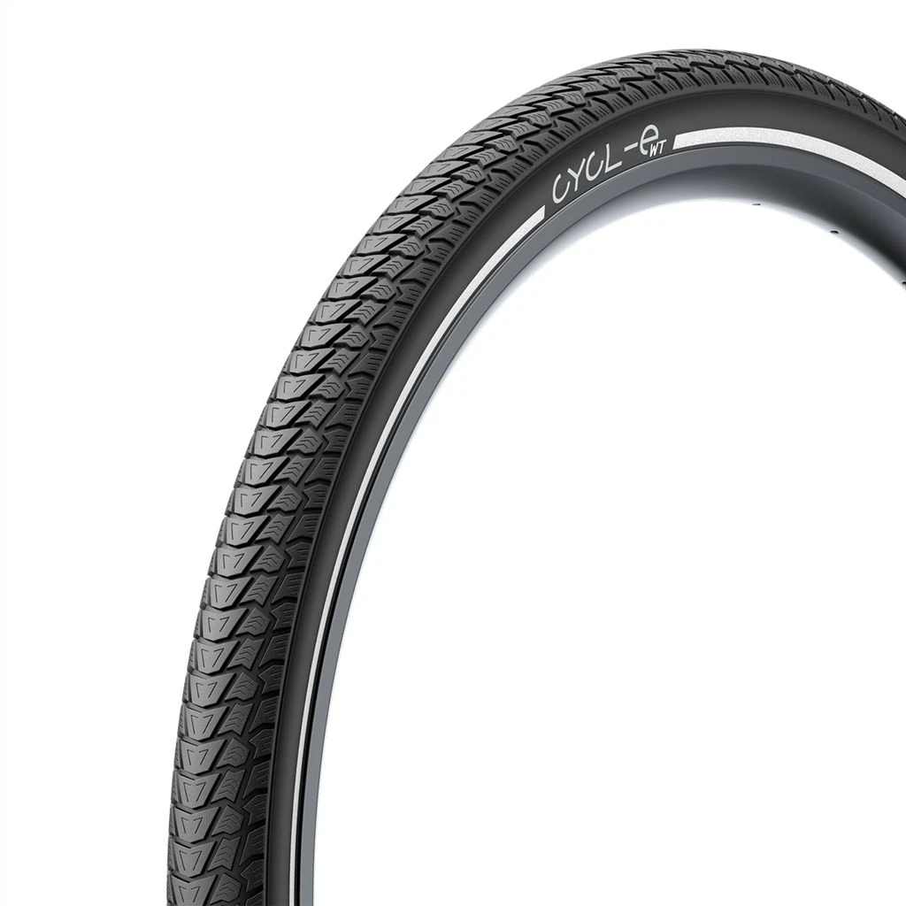 Die CYCL-E Produktepalette wurde speziell für winterliche Bedingungen entwickelt, wie sie häufig in oder ausserhalb der Stadtgrenzen zu finden sind. Ob kalter Asphalt, eine dünne Schneedecke, Eiswasserspritzer oder sogar leichter Frost, der CYCL-E WT bietet, wie auch die PIRELLI PKW-Winterreifen, verlässliche Performance unter widrigsten Bedingungen. Der Reifen ist ECE-R75 zertifiziert und eignet sich dadurch auch für schnelle E-Bikes bis 50km/h.