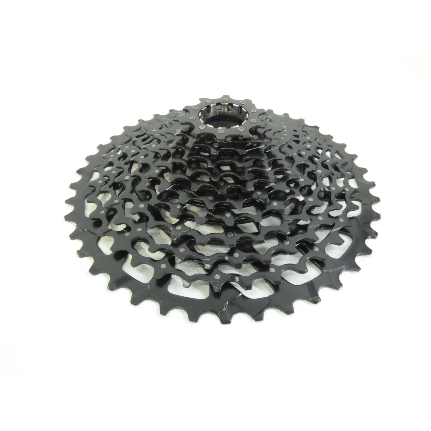 FULL PIN™ technology uses eleven lightweight, stamped steel cogs held together with 123 high-strength stainless steel pins. The result: a cassette that’s light, durable and equipped with SRAM’s super wide 10-42 gear range that’s a perfect fit for any ride. The open design similar to our X-DOME™ cassette aids in mud clearance, giving you cleaner shifting performance and longer component life.