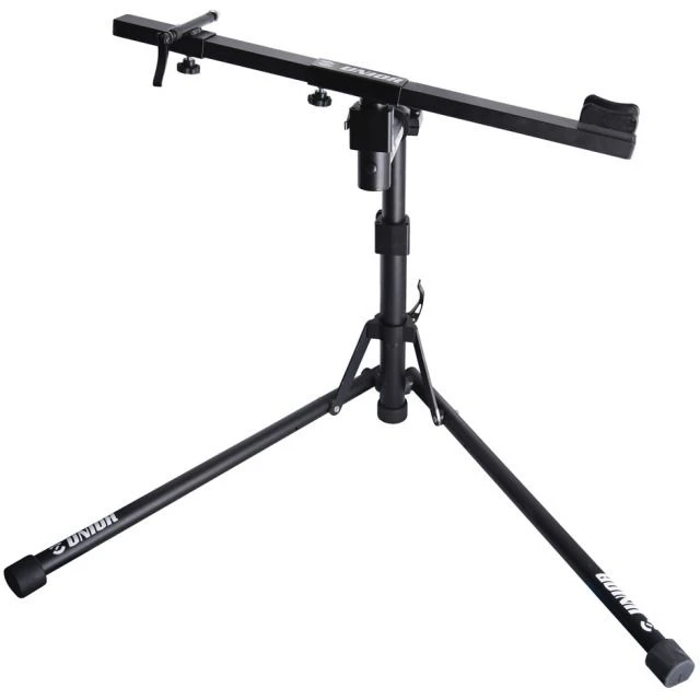 Der Unior Rennradständer ist ein hoch entwickeltes Produkt, welches in Zusammenarbeit mit den besten und bekanntesten Pro Tour Teams entwickelt wurde. Der Rennradständer ist aus massiven Aluminium- und Stahlteilen gebaut und wiegt nur 5,1 kg. Im Vergleich zu anderen Fahrradständern nimmt das Zweibeindesign des Unior Ständers weniger Platz in Anspruch und sorgt für mehr Arbeitsfläche. Der gesamte Ständer ist in der Höhe verstellbar und die Oberseite des Ständers hat einen einstellbaren Winkel.
